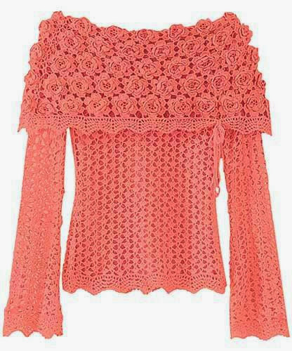 Olá gente. Hoje vim mostrar a blusa mais desejada da internet e que vai para uma cliente de São Paulo. Chamei de Maravilhosa, porque é o que ela é na verdade. A cor foi escolhida pela cliente, como não consegui um tom de azul na quantidade necessária, ela optou pelo verde água, para combinar com os olhos. As mangas foram feitas retas, diferente do modelo original, também a pedido da cliente. Nessa cor é a primeira que eu vejo. Foram 4 fileiras de flores, pois não foi necessária a 5a fileira.